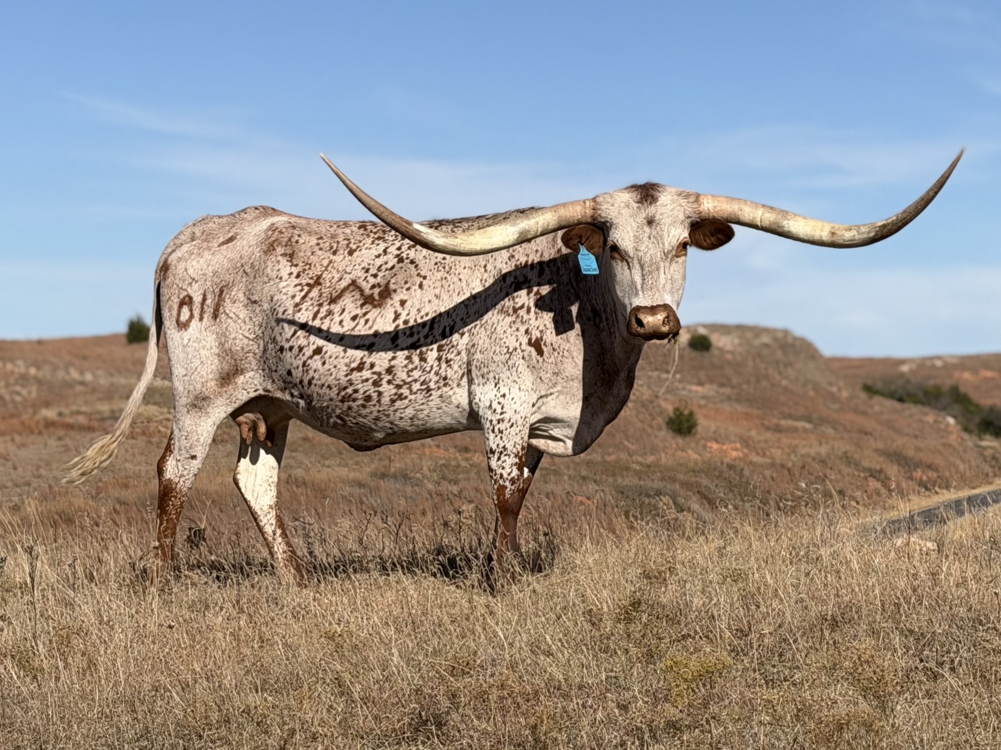 💫 “Beautiful” — Over 100" of Swooping Elegance and Industry Impact 💫 This female is making her mark in the Texas Longhorn industry — and she’s doing it with style and substance. A daughter of M2 Rifleman, crossed with the powerhouse genetics of Juma and JR Grand Slam, she’s the perfect blend of beauty and performance. Her horn? Over 100" of swooping grace that turns heads and sets standards. Her production? Two outstanding daughters, with the latest one dominating the NLFR trail and proving this line is built for champions. Now she’s raising a massive bull calf destined for the 2026 NLFR Championship run — and if his dam’s track record is any indication, he’ll be one to watch. “Beautiful” isn’t just a name — it’s a legacy in motion. PV'd and DNA on file