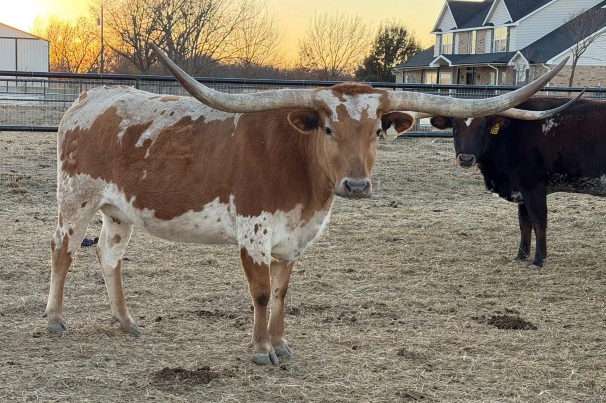 A FANTASTIC YOUNG COW SIRED BY OVER 90" COMANCHE WARRIOR OUT OF STRONG SHOW LINE OF COOTER HILL. ROSANNA WILL BE EXPOSED TO M2 GUS FOR 2026 CALF. BLOOD TESTED PREGNANT FOR A 3-N-1 PACKAGE.