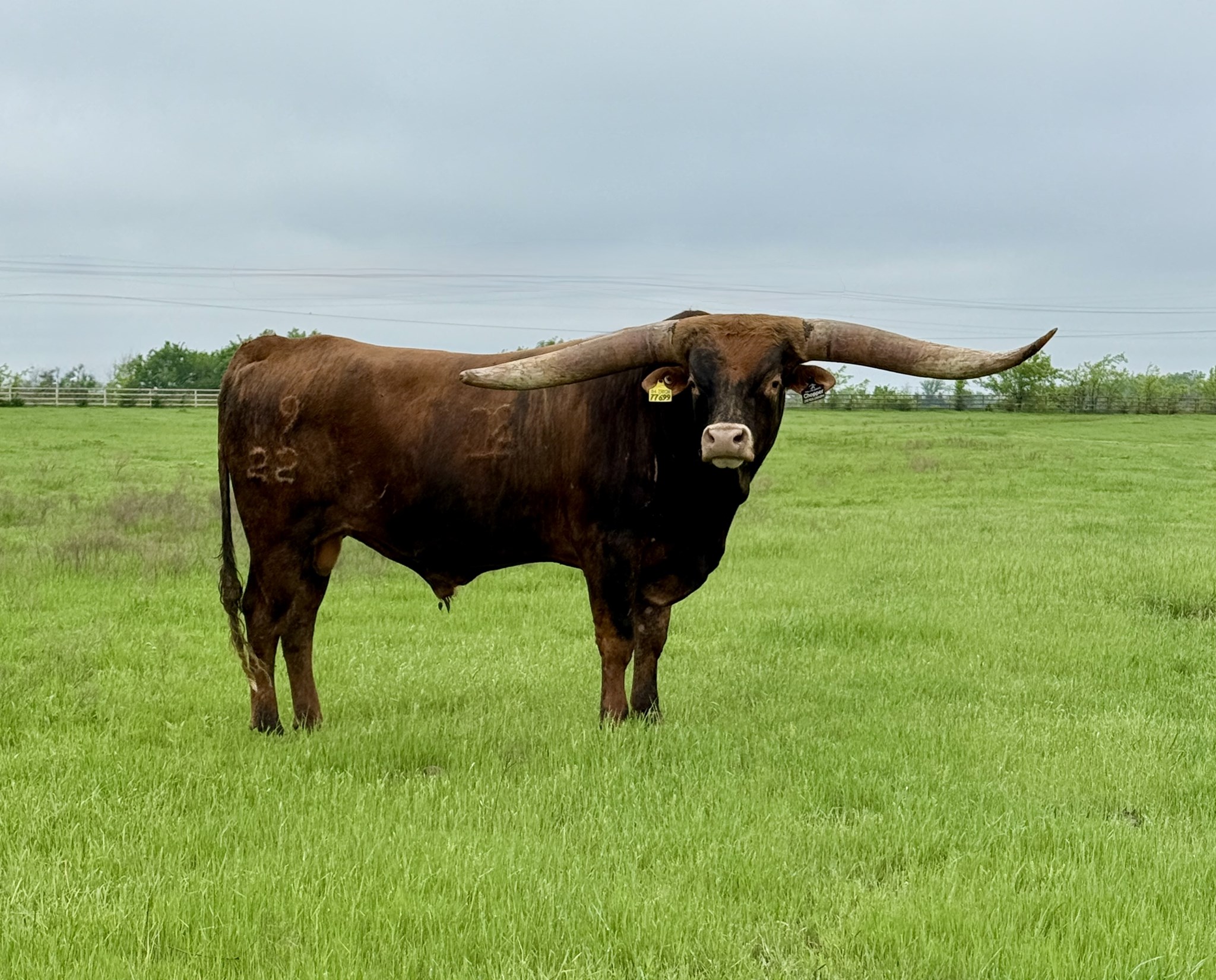 This young bull has his first set of calves hitting the ground starting in April! Genetically packed with color to burn!
