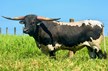 This is a cross champions are made of. Sired by the multi grand champion and youngest true black bull to hit 90" TTT, Jest a Cowboy and out of our JH Rural Safari Son, futurity winner. He has two true black parents that were bred for size, horn, and color.