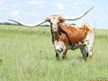 A SOLID FRAMED BIG HORNED HEIFER THAT IS VERY GENTLE AND EASY HANDLING. PARENT VERIFIED AND DNA ON FILE AT TLBAA. Palpated Safe in calf - BRED TO M2 APACHE FOR HER FIRST CALF - DUE SPRING 2025